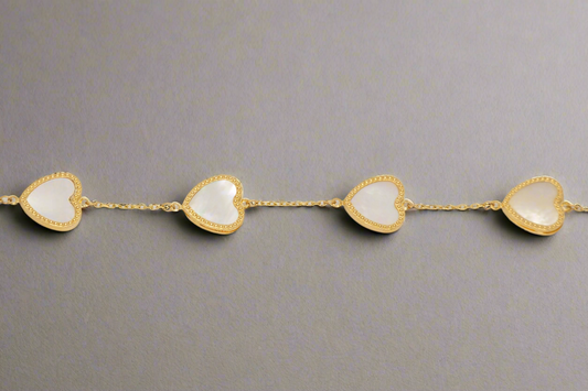 14k Gold Mother of Pearl Heart Bracelet