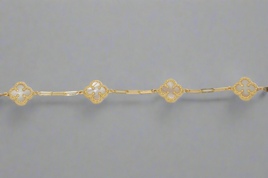 14k Gold Mother of Pearl Clover Links Bracelet