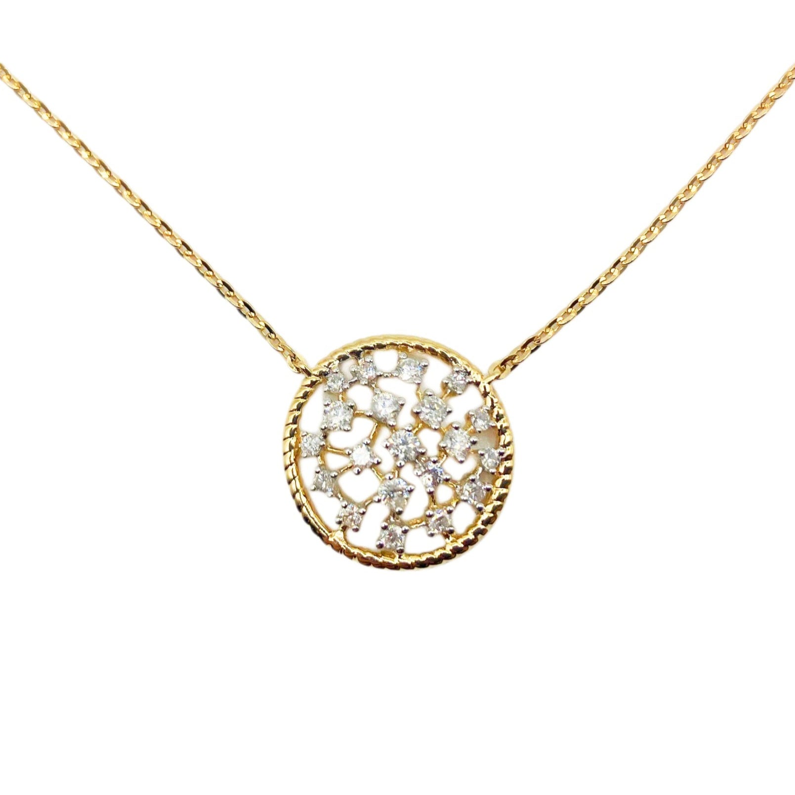 Indulge in timeless elegance with our 14k Gold Scattered Diamond Necklace. Crafted from luxurious 14k gold, this necklace features scattered diamonds for a subtle yet stunning sparkle. Elevate any outfit with this effortlessly chic piece, perfect for any occasion.